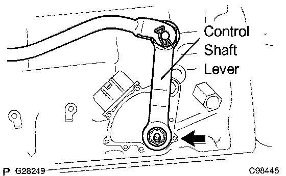 e. Turn the control shaft lever counterclockwise until it stops, and turn it clockwise 2 notches to set it to the N position. Remove the transmission control shaft lever.
