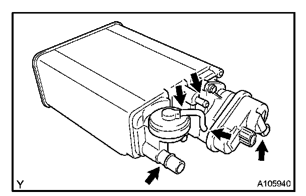 a. Visually check the charcoal canister for cracks or damage. If cracks or damage are found, replace the canister.