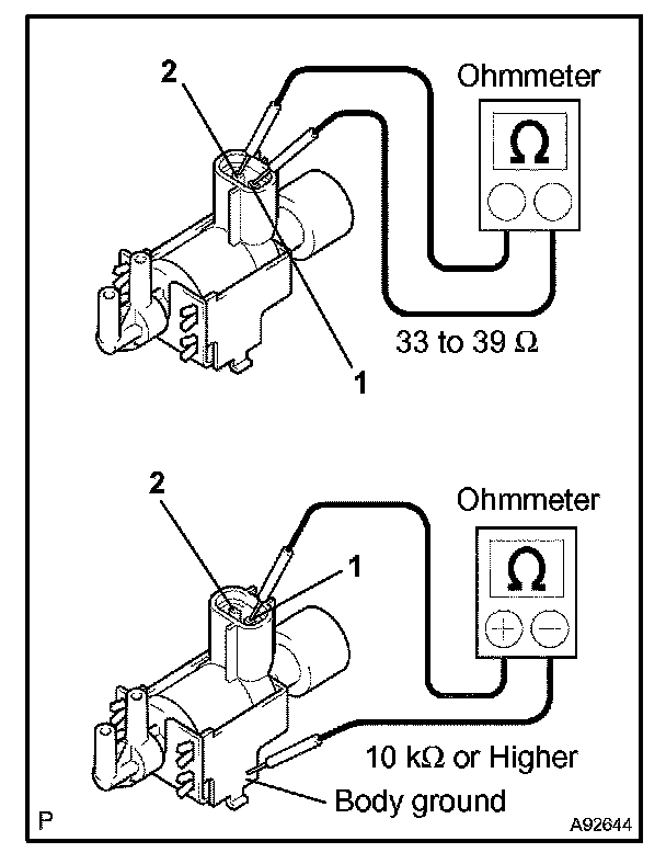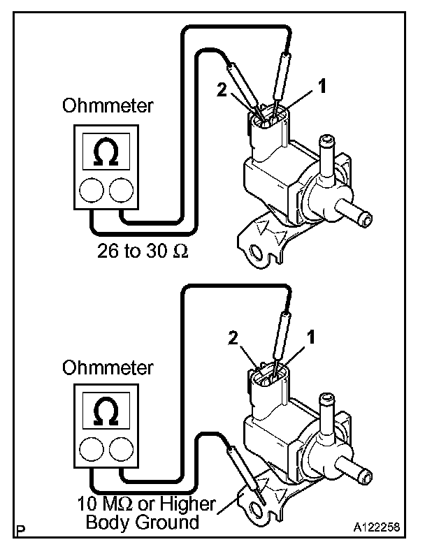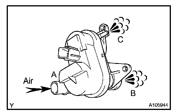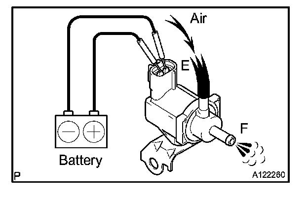1. Check that air does not flow from port E to port F. If the result is not as specified, replace the VSV assy.