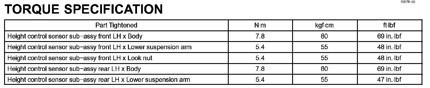 Lighting-Torque Specification: