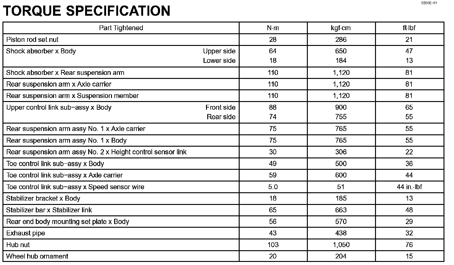 Rear Suspension-Torque Specification: