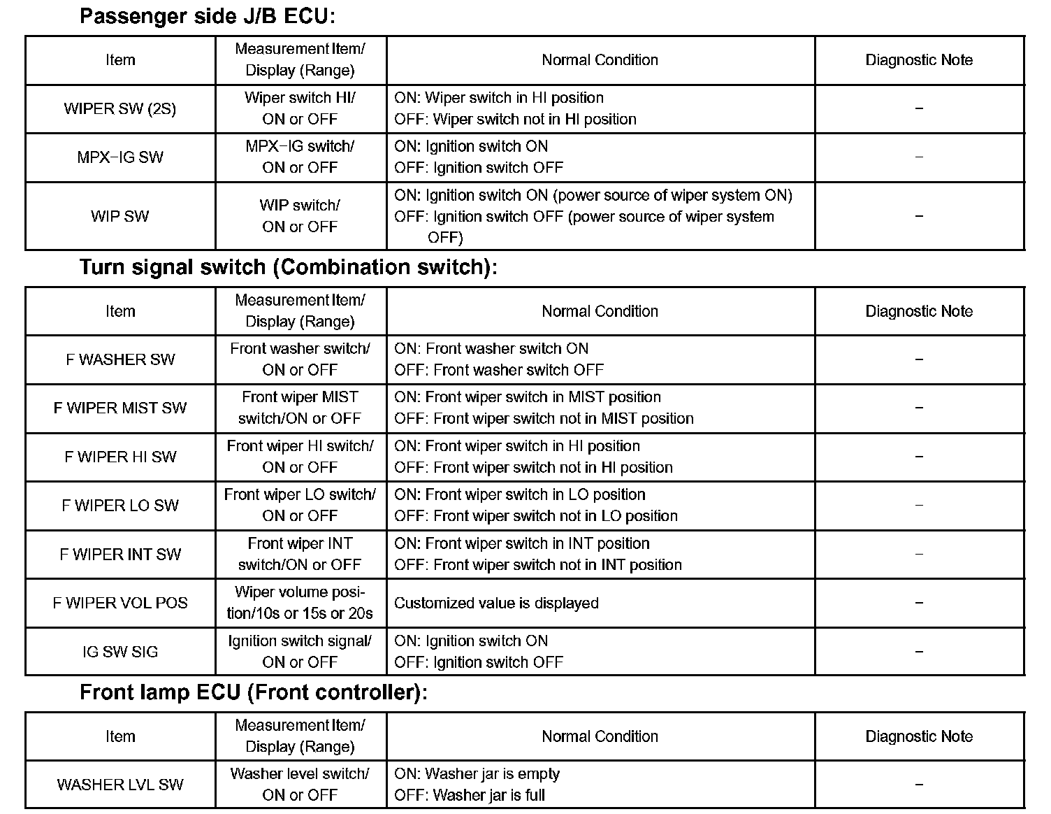 DATA LISTHINT: Using the hand-held tester's DATA LIST allows switch, actuator and other item values to be read without removing any parts. Reading the DATA LIST early in troubleshooting is one way to save time.