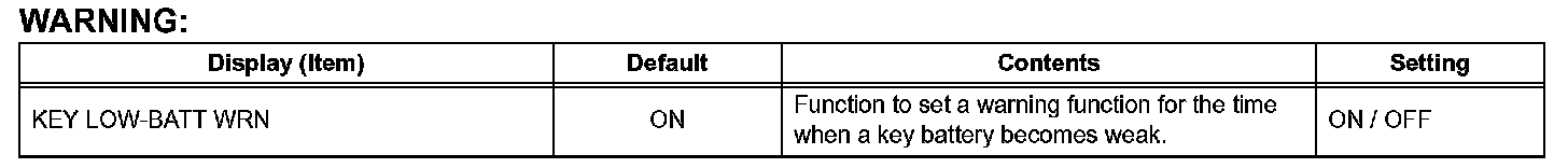 When electrical key cancel is activated, the wireless door lock buzzer sounds twice. To return to the original condition, perform the procedures again. When the original condition is returned, the wireless door lock buzzer sounds once.