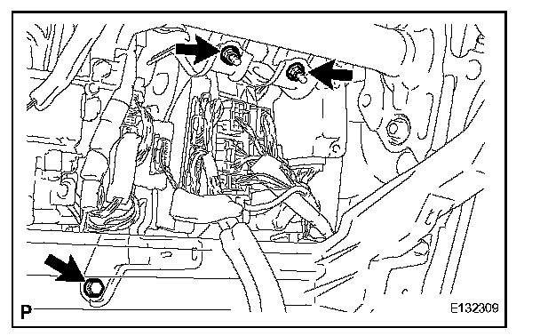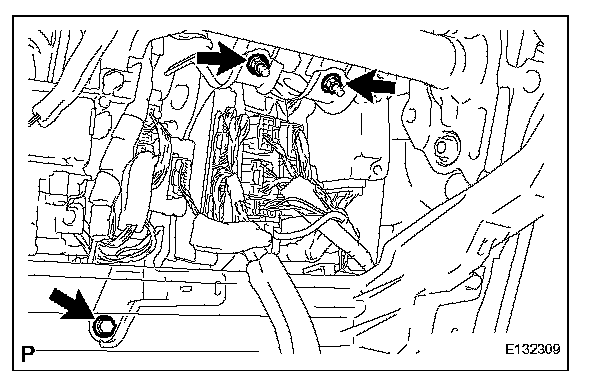 a. Remove the 2 nuts and the bolt and disengage the certification ECU with instrument panel wire.