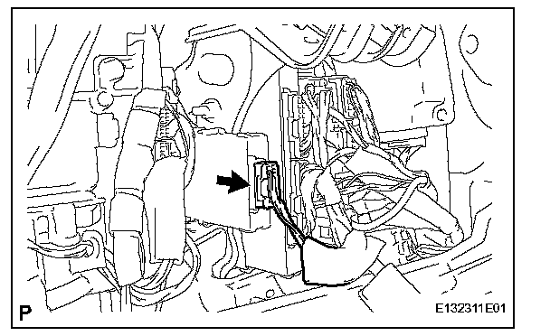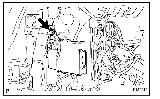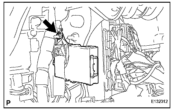 b. Turn the certification ECU with instrument panel wire in the direction indicated by the arrow.