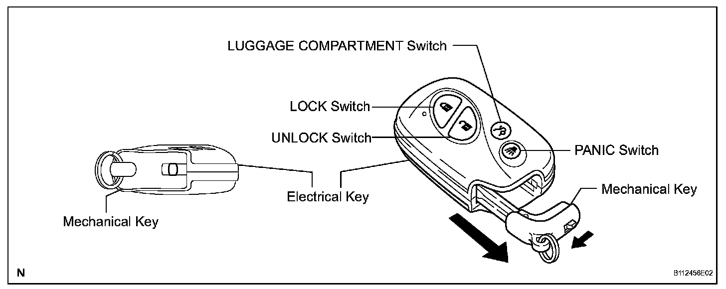 Push the LOCK/UNLOCK/PANIC/LUGGAGE COMPARTMENT switch on the electrical key to operate each function. For details.