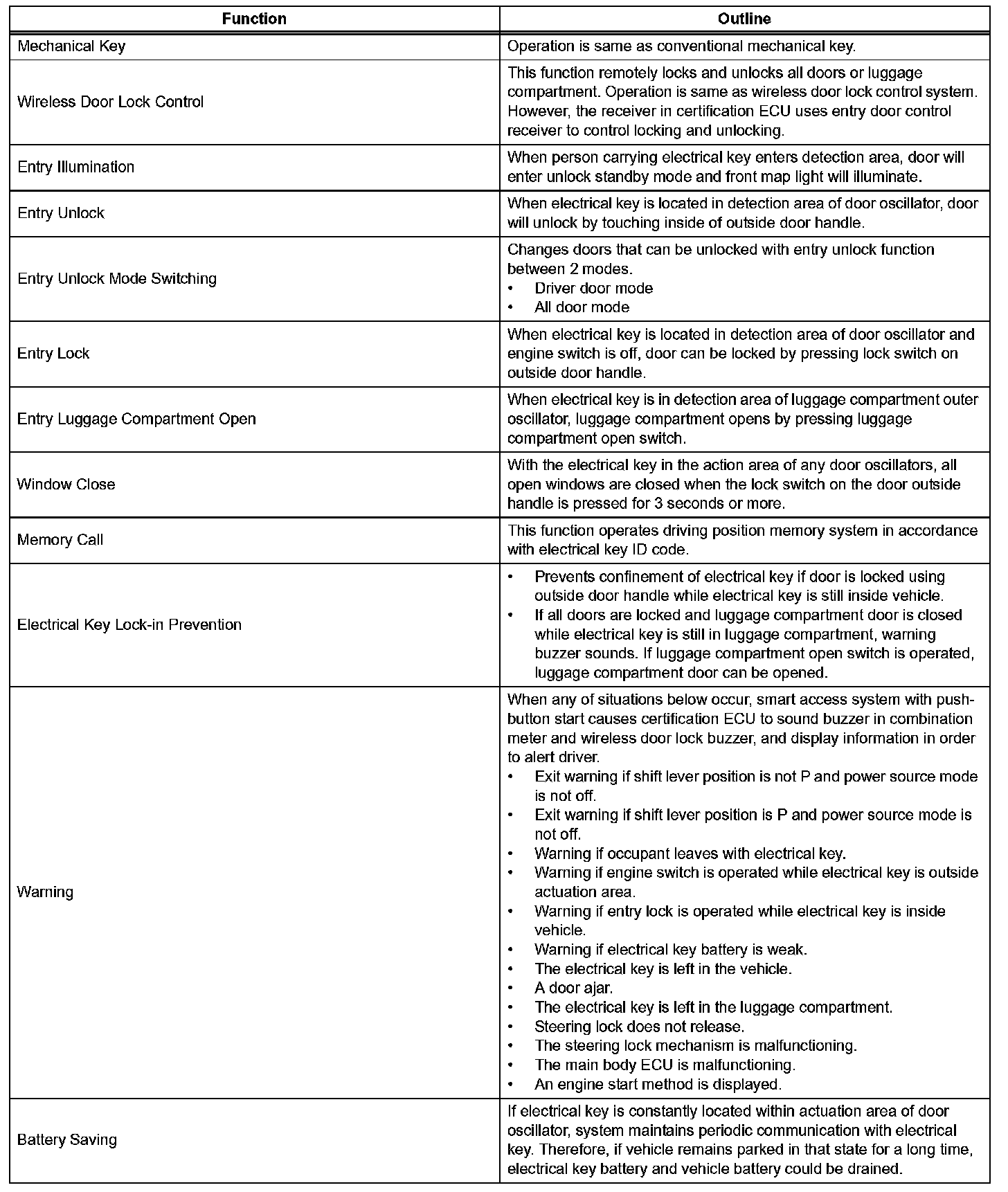 a. The smart access system with push-button start has the given functions: