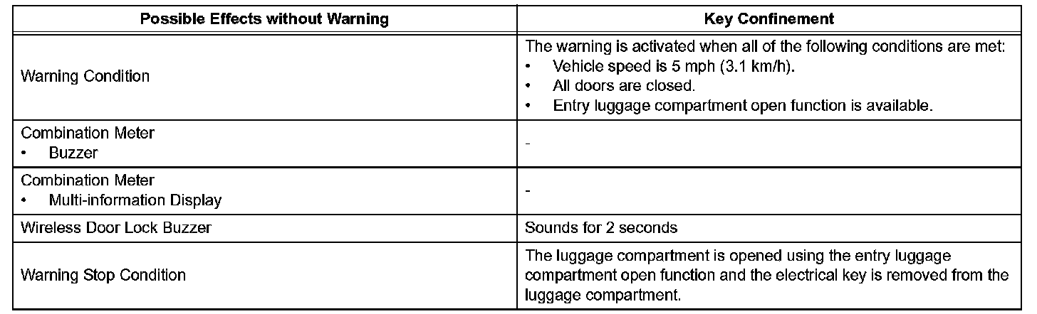 b. If the luggage compartment is closed with the electrical key in it, the alarm will sound and the luggage compartment can be opened only when all the doors are locked in order to prevent electrical key confinement in the vehicle.