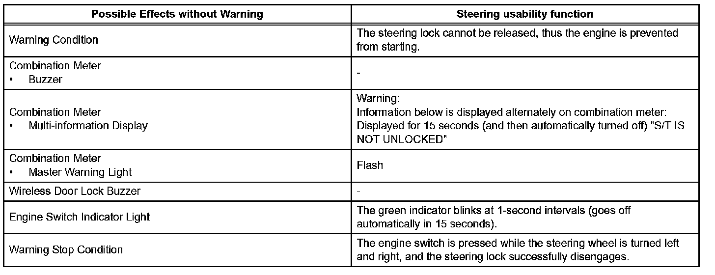The steering lock cannot be released. In this situation, the given control is performed: