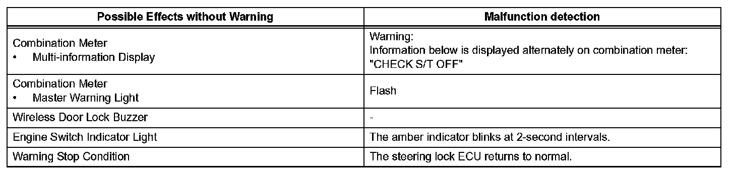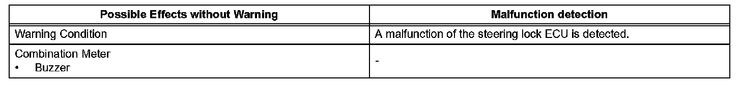 A malfunction of the steering lock ECU is detected.