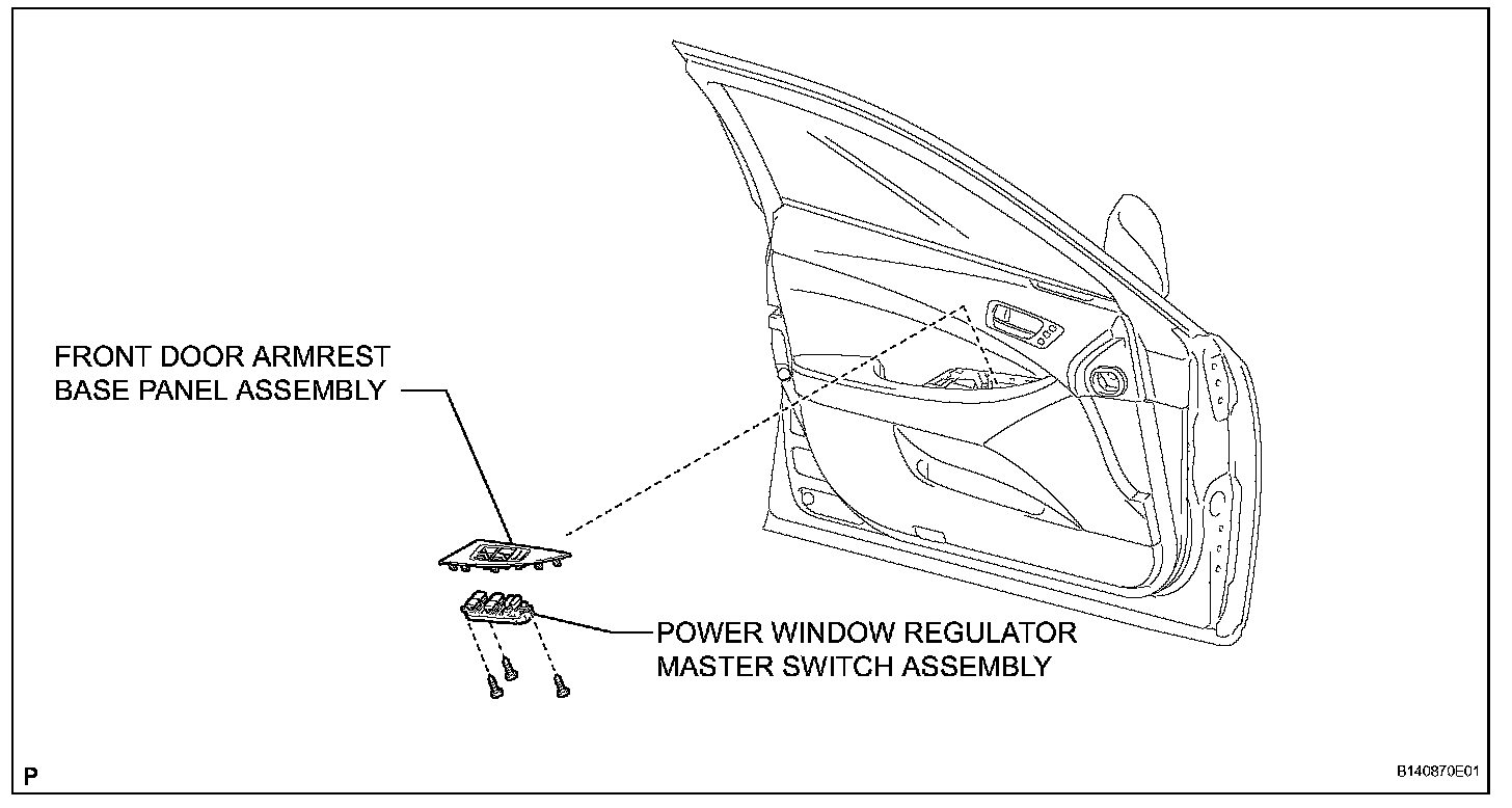 a. Remove the 3 screws and the power window regulator master switch assembly