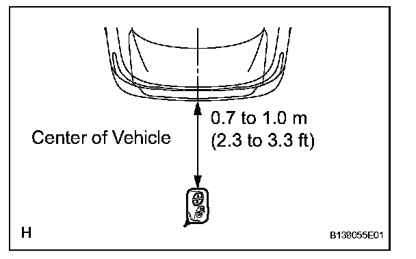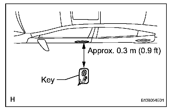 2. Step 2: When the electrical key is brought within 0.7 to 1.0 m (2.3 to 3.3 ft) of the vehicle, check that the system enters unlock standby mode.