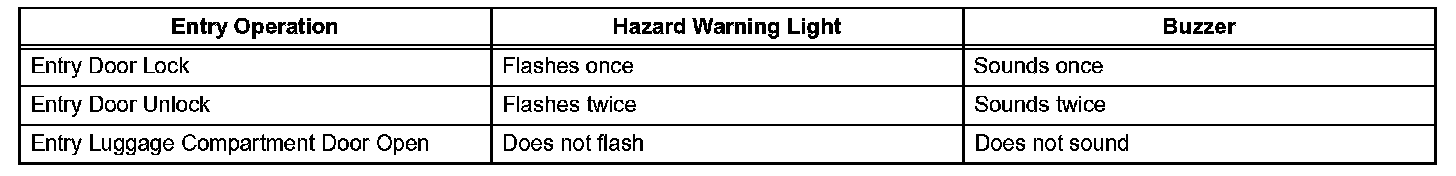 h. Check the answer-back function (hazard warning light flashing and buzzer sounding).