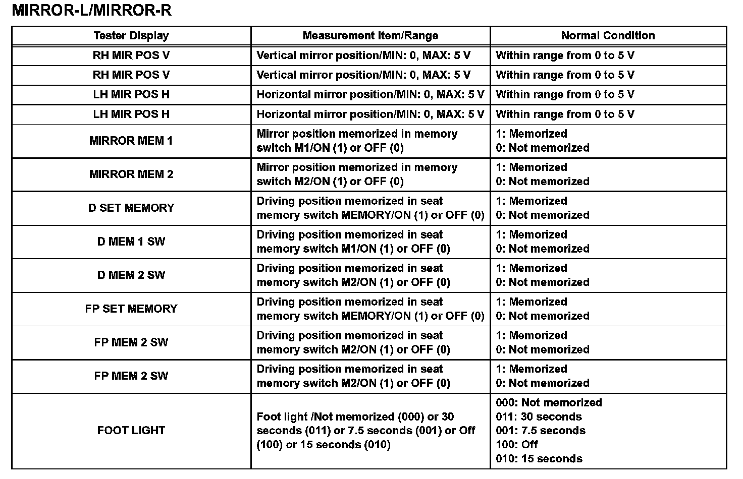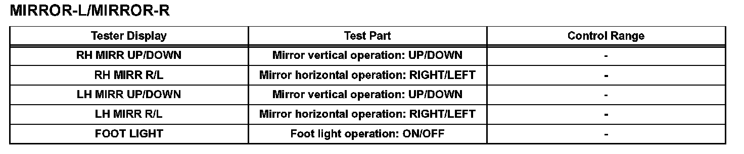 POWER MIRROR CONTROL SYSTEM (w/ Memory)DATA LIST / ACTIVE TEST