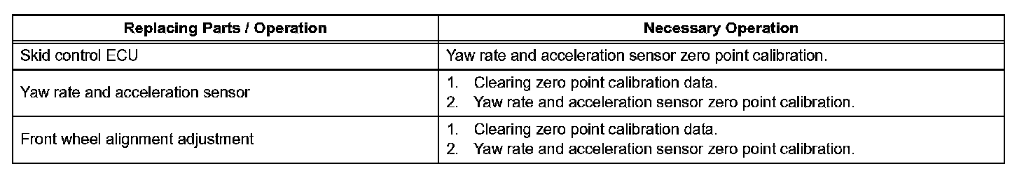 - After replacing the VSC relevant components or performing "Front wheel alignment adjustment", clear and read the sensor calibration data.