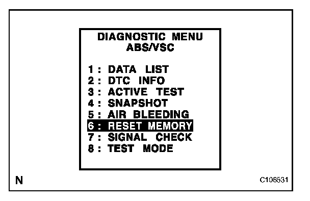 5. Operate the intelligent tester to erase the codes (select "RESET MEMORY").