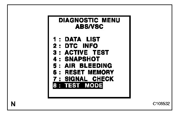 7. Check that the "VSC TEST MODE" is displayed on the multi information display (Test Mode).