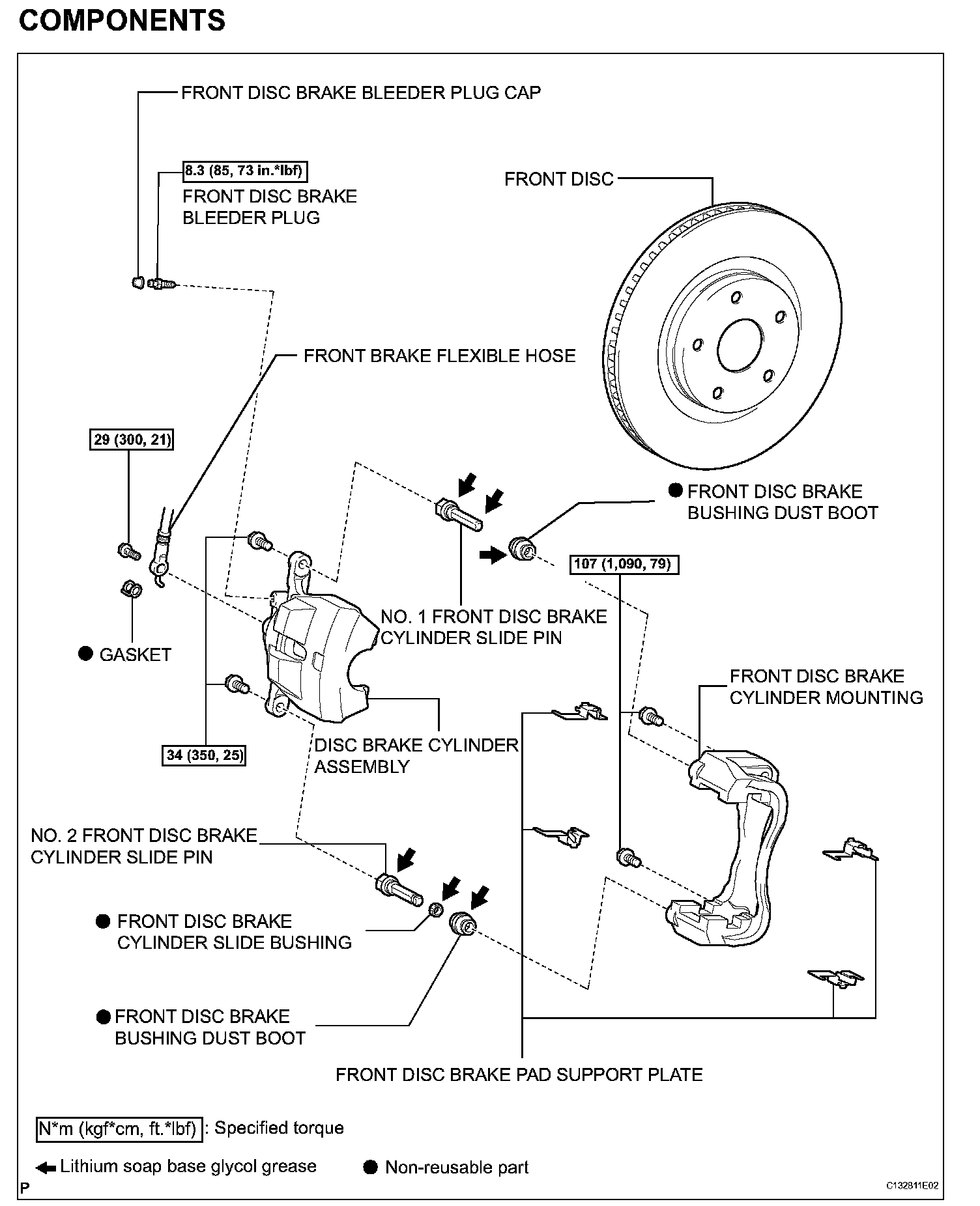 (a) Apply lithium soap base glycol grease to a new front disc brake cylinder slide bushing.