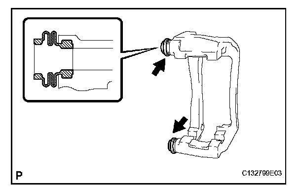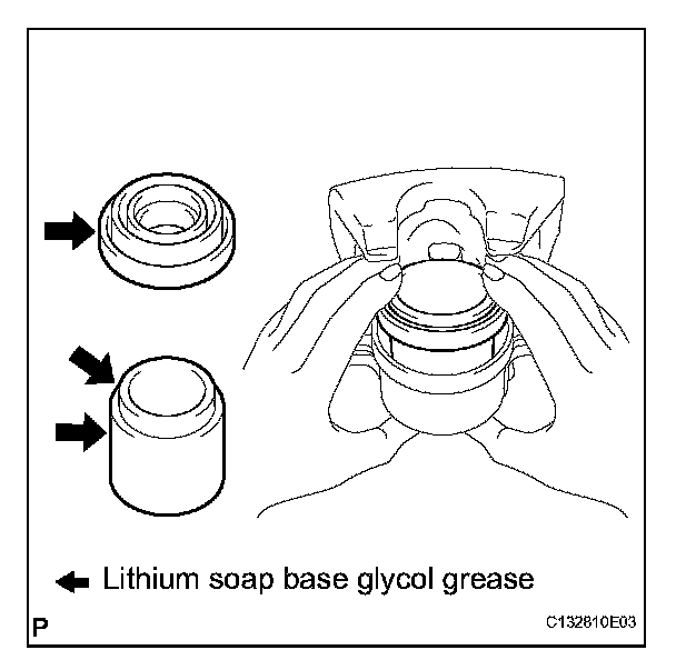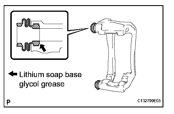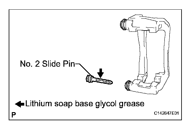 (a) Apply the lithium soap base glycol grease to the sliding part and the seal surface of the No. 2 front disc brake cylinder slide pin.