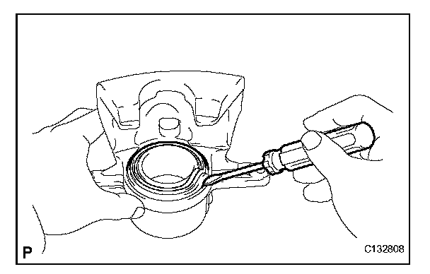 (a) Using a screwdriver, remove the piston seal from the disc brake cylinder assembly.