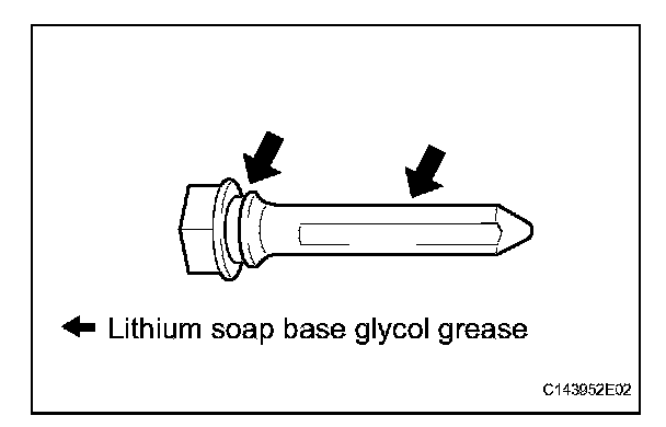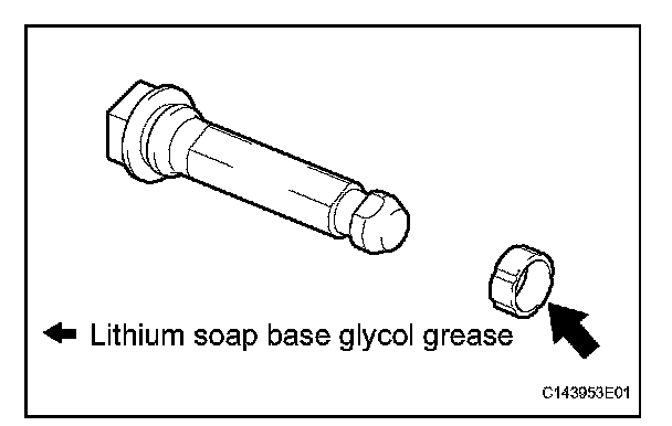 (a) Apply the lithium soap base glycol grease to the sliding part and the seal surface of the No. 1 front disc brake cylinder slide pin.