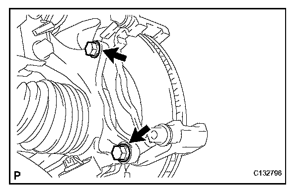 (a) Remove the 2 bolts and front disc brake cylinder mounting from the steering knuckle.