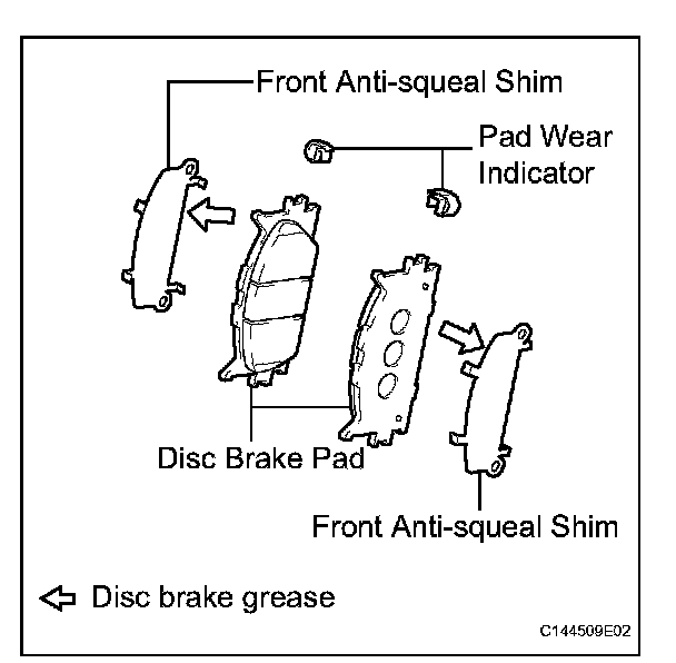 (a) Apply disc brake grease to the front anti-squeal shim.