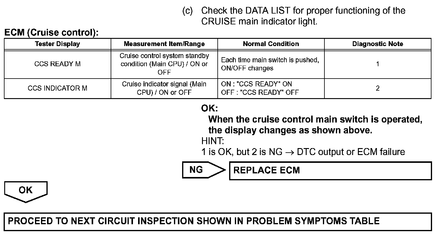 Cruise Main Indicator Light CircuitDESCRIPTION
