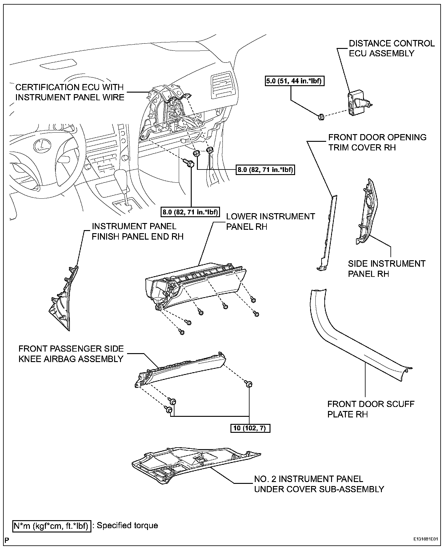 8. REMOVE LOWER INSTRUMENT PANEL RH