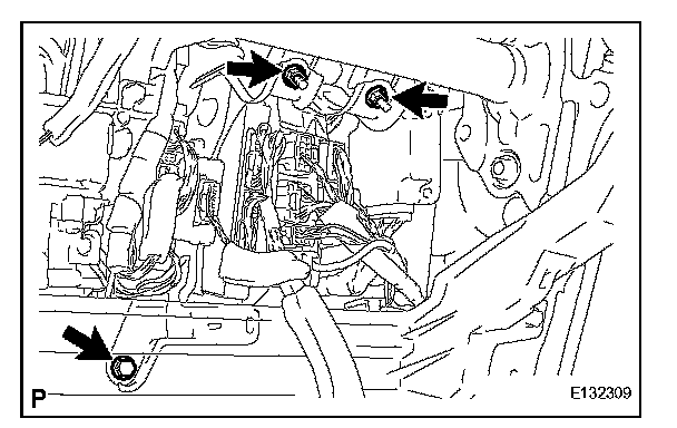 a. Remove the 2 nuts and the bolt and disengage the certification ECU with instrument panel wire.