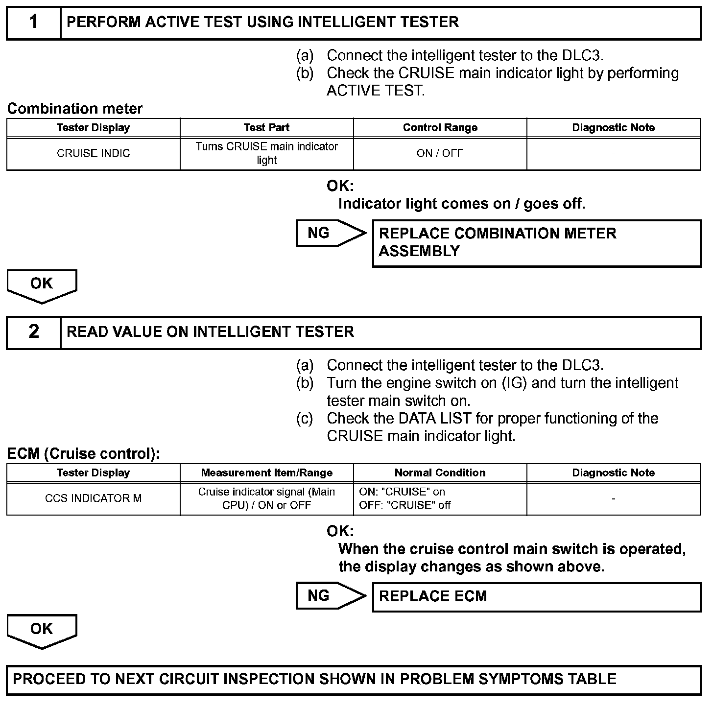 - The CRUISE main indicator light circuit uses CAN communication. If there is a malfunction in this circuit, check for DTCs in the CAN communication system before troubleshooting this circuit.