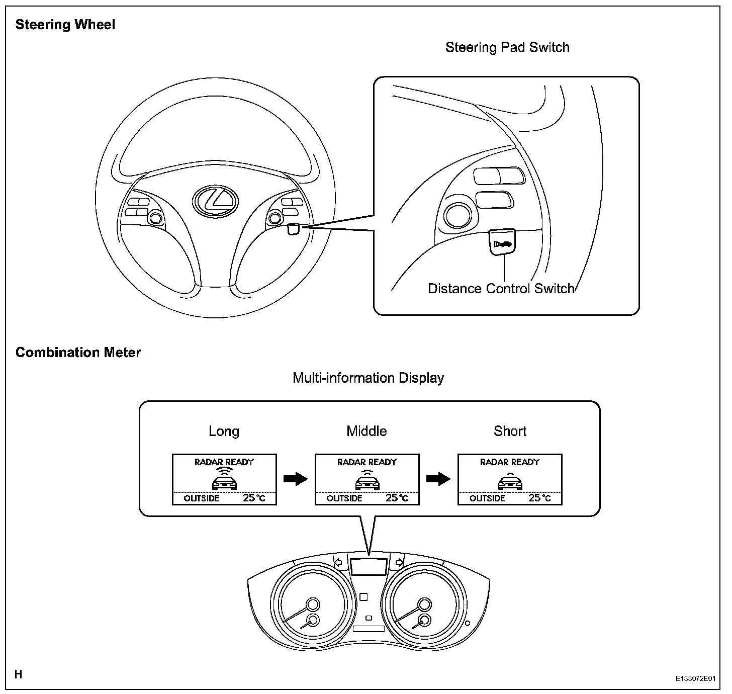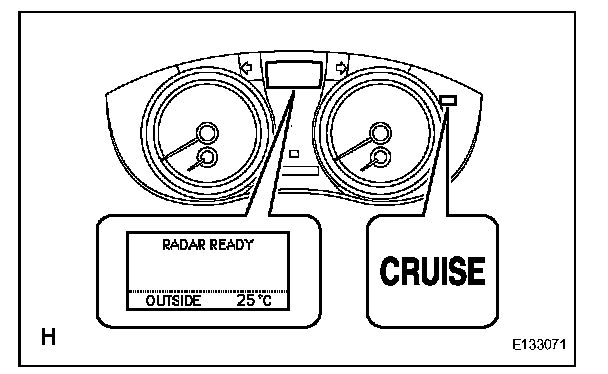 d. Check that the indication of the vehicle-to-vehicle distance, which is given on the multi-information display on the combination meter, changes from long to middle to short in that order.