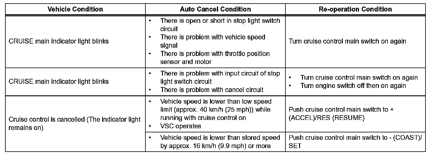 is in operation, the system clears the stored vehicle speed in the ECM and cancels the cruise control operation.