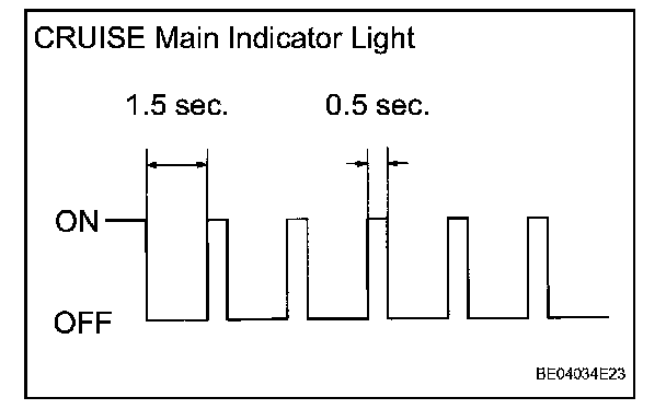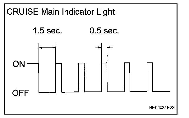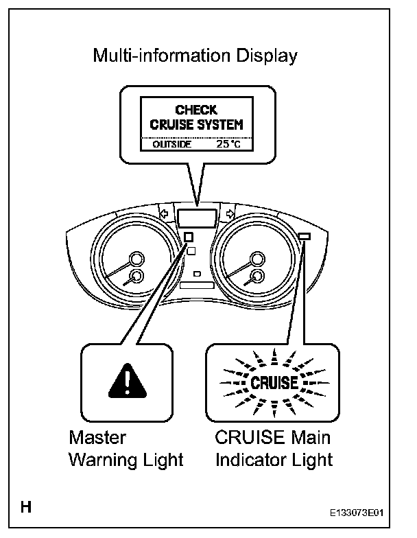 a. The diagnosis function makes the master warning light and the multi-information display come on, and the CRUISE main indicator light blinks as given in the illustration. When a malfunction occurs in the dynamic radar cruise control system, the DTCs are stored in the ECM.
