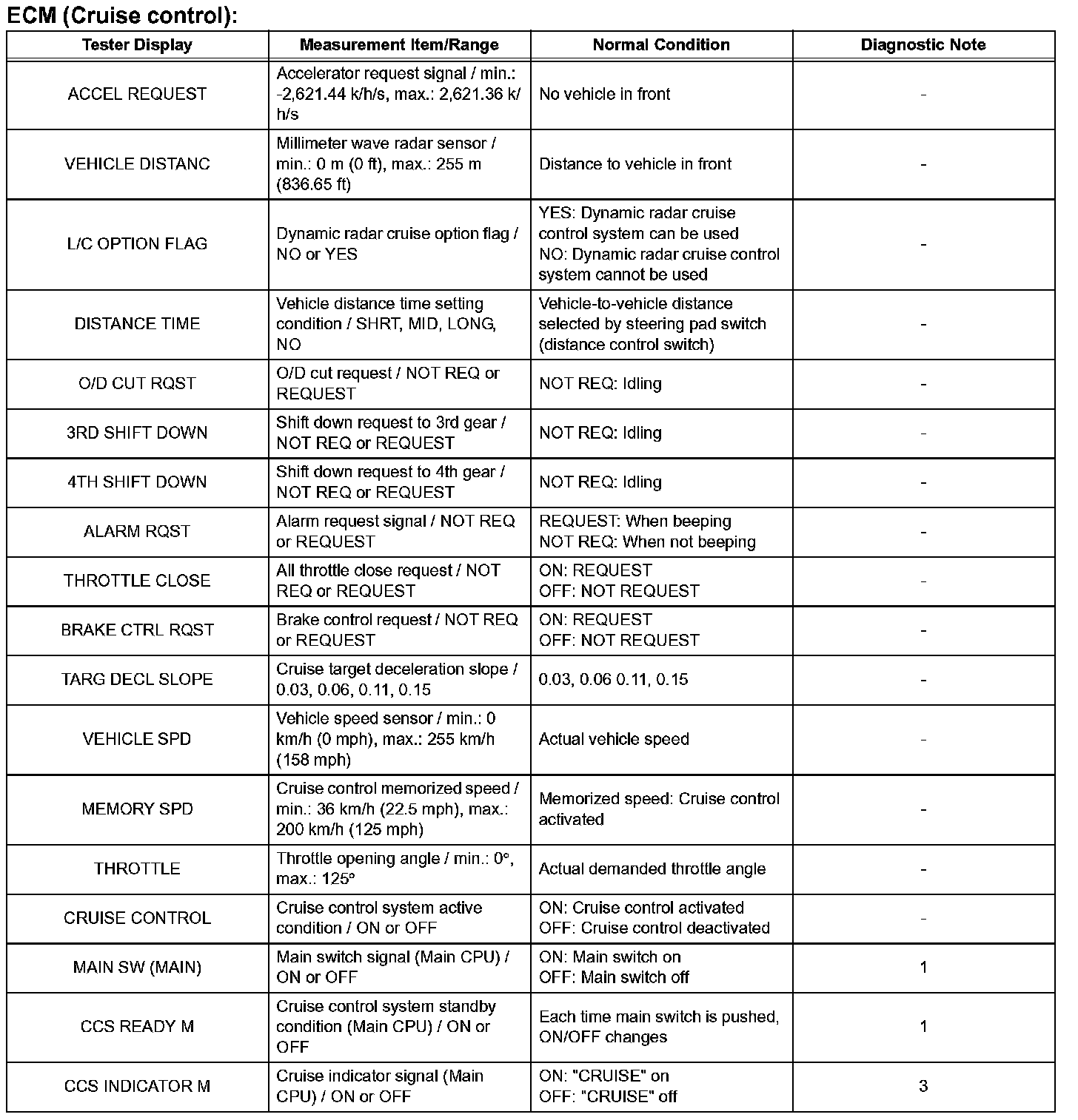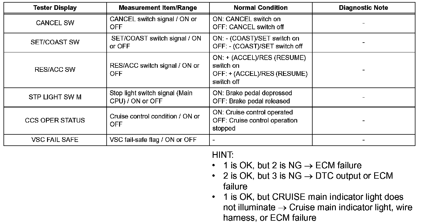 HINT: Using the intelligent tester's DATA LIST allows switch, sensor, actuator, and other item values to be read without removing any parts. Reading the DATA LIST early in troubleshooting is one way to save time.