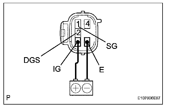 1. Apply battery voltage between terminals 3 (IG) and 6 (E).