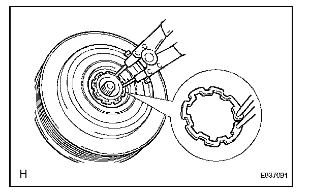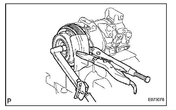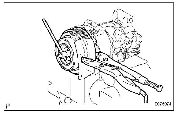 d. Using a snap ring expander, remove the snap ring and then remove the magnetic clutch rotor.