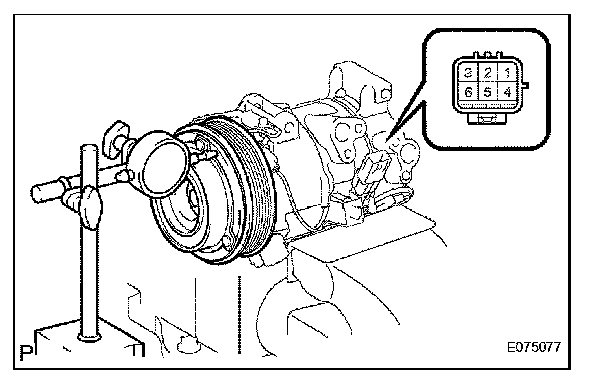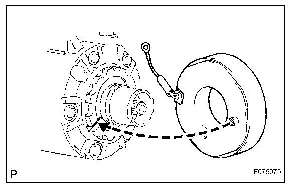 a. Install the magnetic clutch stator while aligning the protrusion on the stator with the notch on the air compressor assembly as given in the illustration.