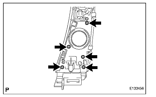 NOTE: When disassembling the center cluster module control assembly, eliminate static electricity by touching the vehicle body to prevent the components from being damaged.
