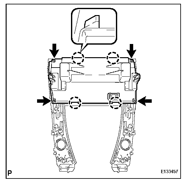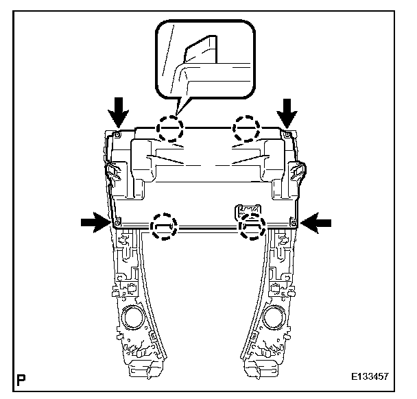 NOTE: When reassembling the center cluster module control assembly, eliminate static electricity by touching the vehicle body to prevent the components from being damaged.
