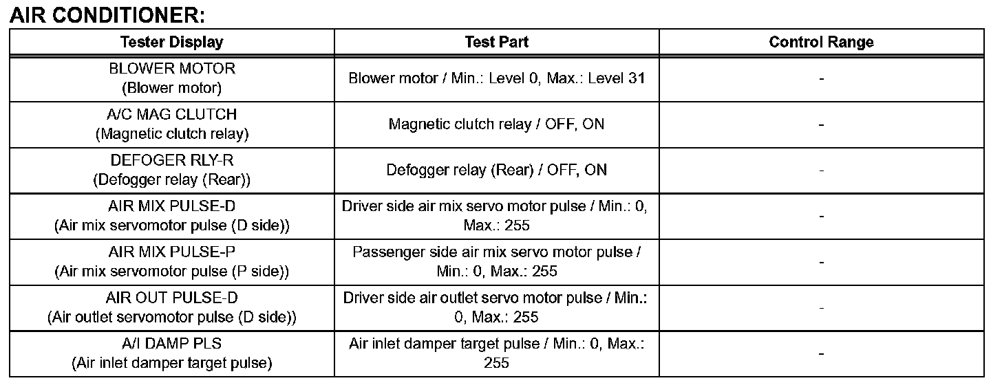 d. Enter the given menus: DIAGNOSIS / OBD/ MOBD / AIR CONDITIONER / ACTIVE TEST.