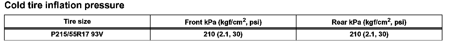 ^ Specified tire pressure changes depending on the size or type of the tire.