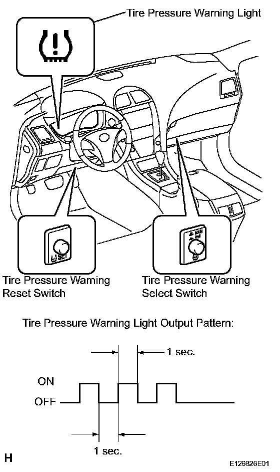 (1) Change the mode to test mode using intelligent tester and check that tire pressure warning light tire pressure warning light blinks at 0.125 second intervals.