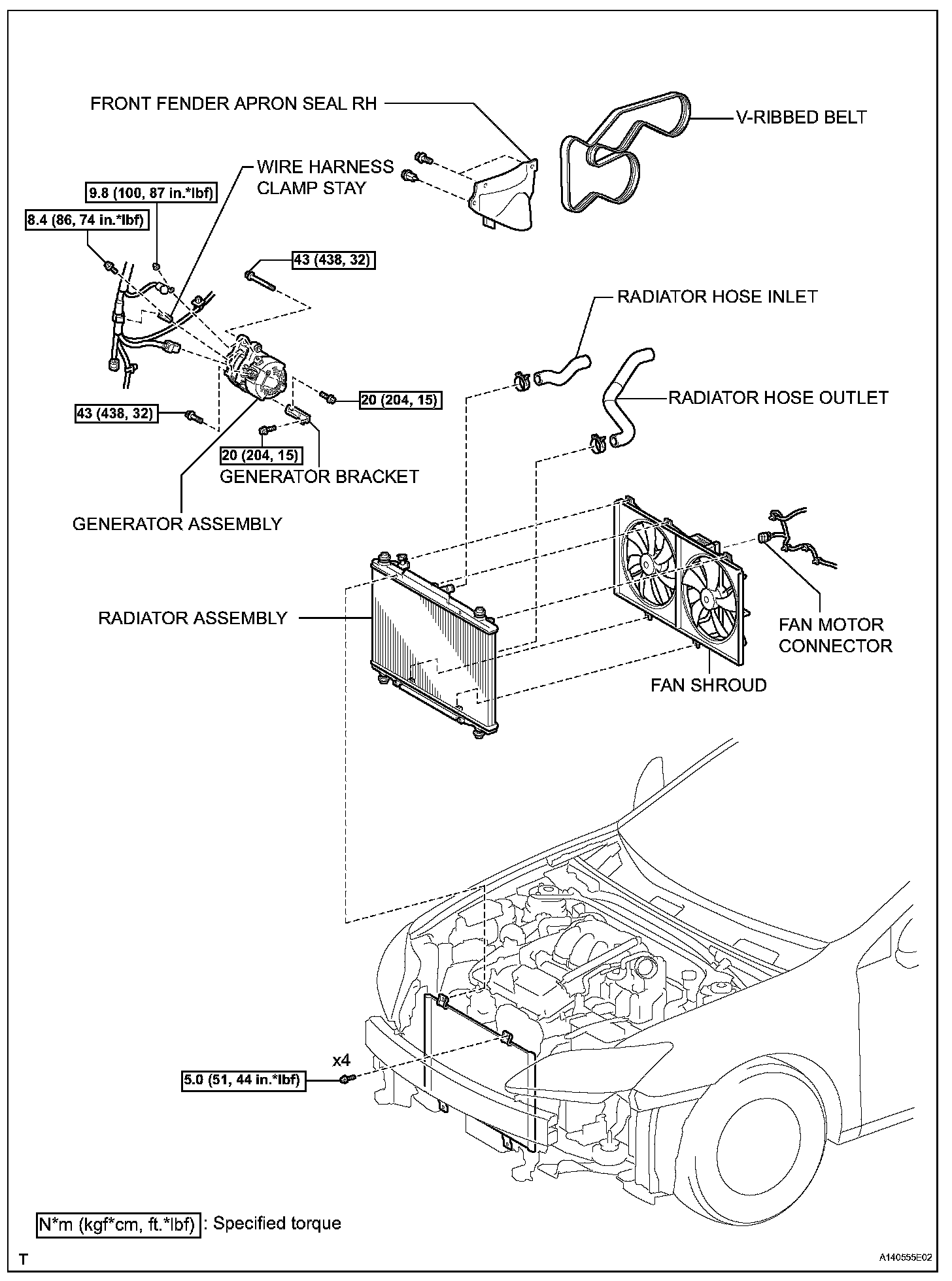 Torque: 10 N.m (102 kgf.cm, 7 ft.lbf)