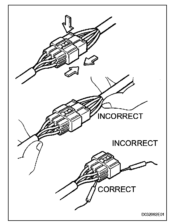 - As a waterproof connector cannot be checked from the backside, check it by connecting a sub-harness.