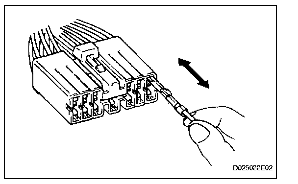 Check by pulling the wire harness lightly from the backside of the connector. Look for unlatched terminals, missing terminals, loose crimps or broken conductor wires. Check visually for corrosion, metallic or foreign matter and water, and bent, rusted, overheated, contaminated, or deformed terminals.
