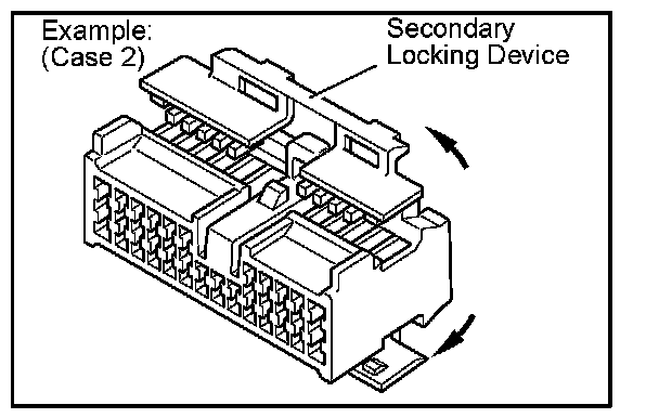 b. Use a special tool or the terminal pick to unlock the secondary locking device or terminal retainer.