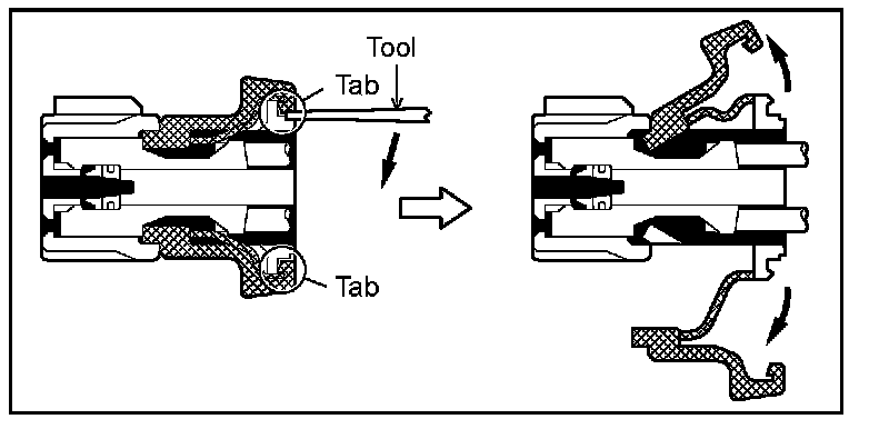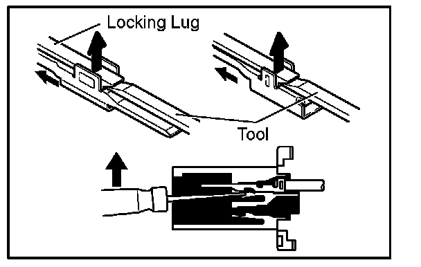 a. Locking device must be disengaged before the terminal locking clip can be released and the terminal removed from the connector.