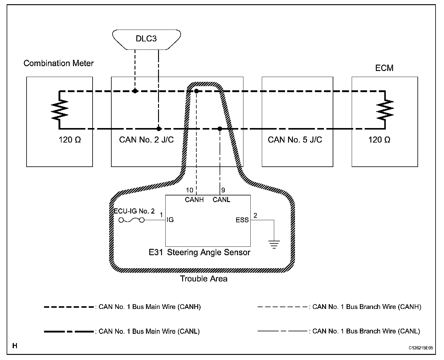 HINT: "STEERING SENSOR" refers to the circuit that includes the steering angle sensor.