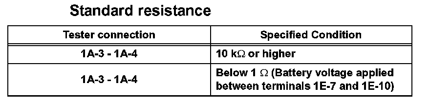 Using an ohmmeter, measure the resistance according to the value(s) in the table.